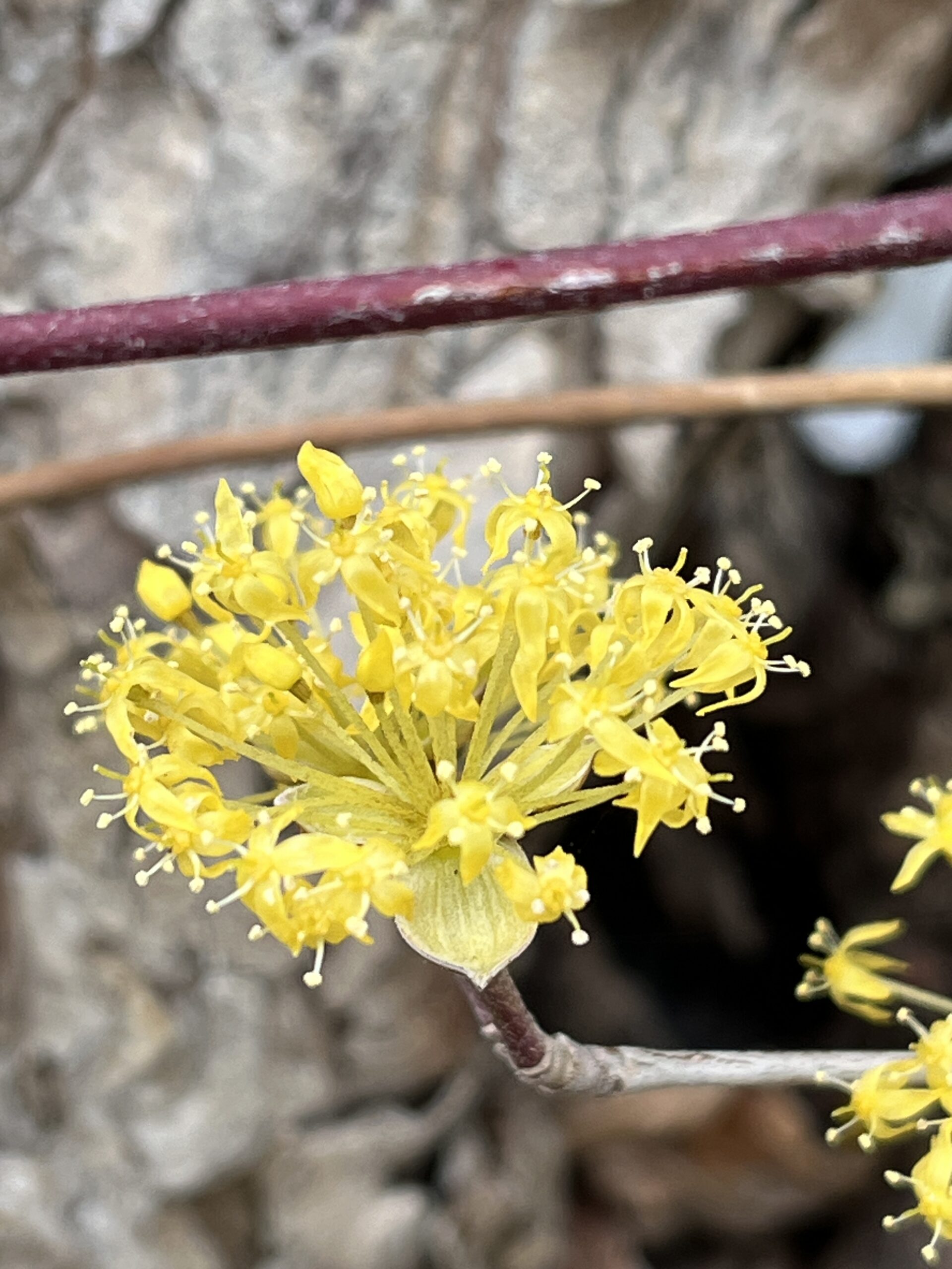 こちらは山茱萸 (さんしゅゆ)春黄金花(はるこがねばな)ともよばれるそうです。