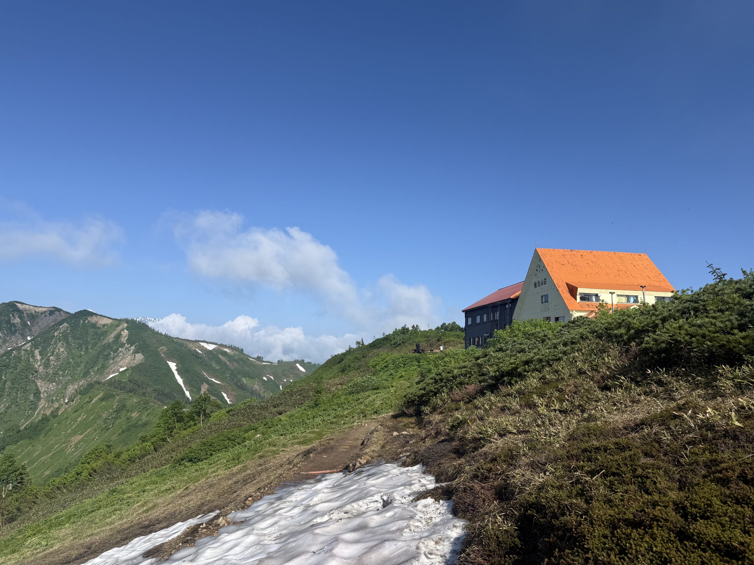 終盤の「鉄砲坂」を頑張ると、見えました種池山荘!