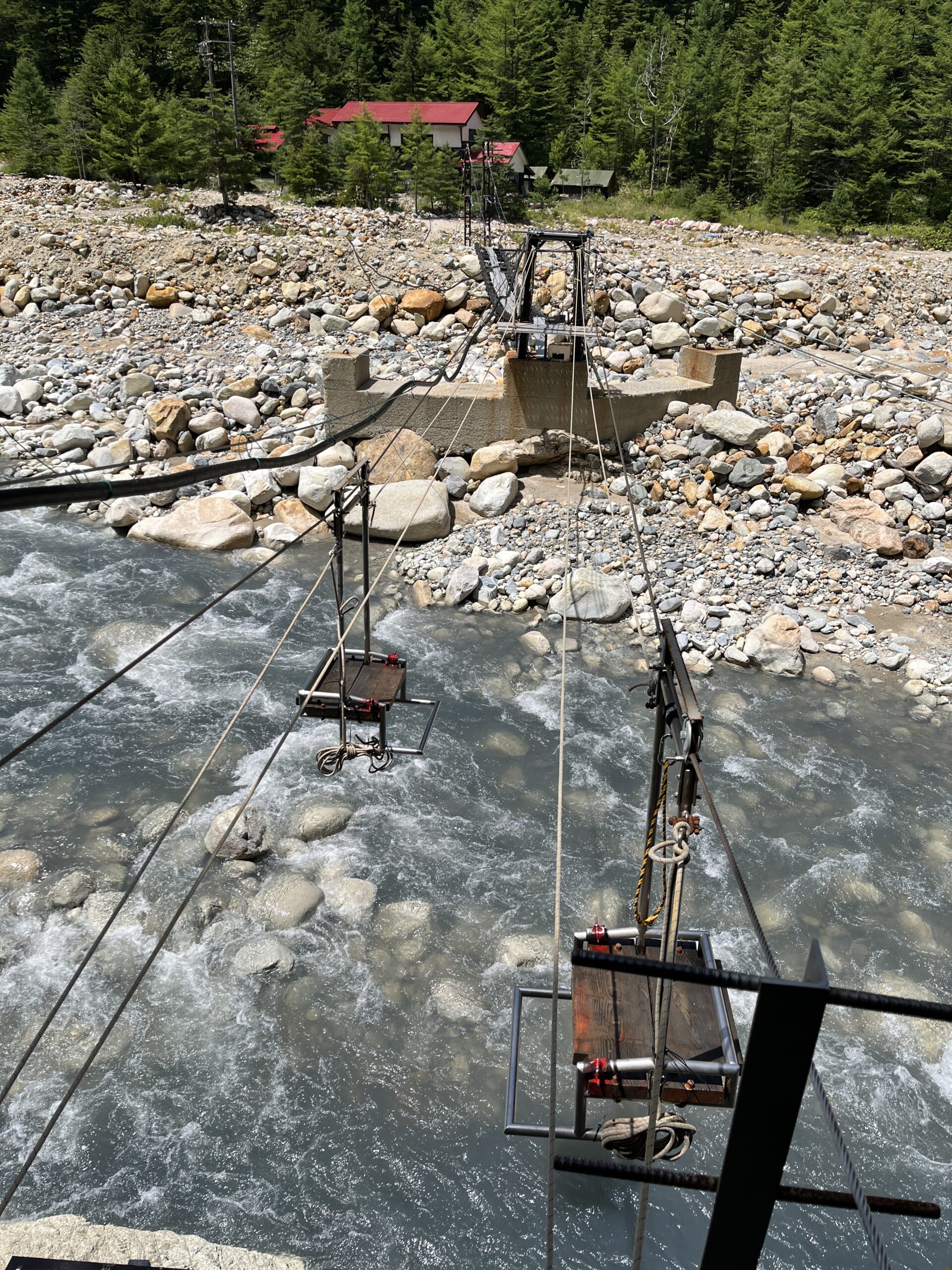 晴嵐荘さんへはジップラインで渡ります