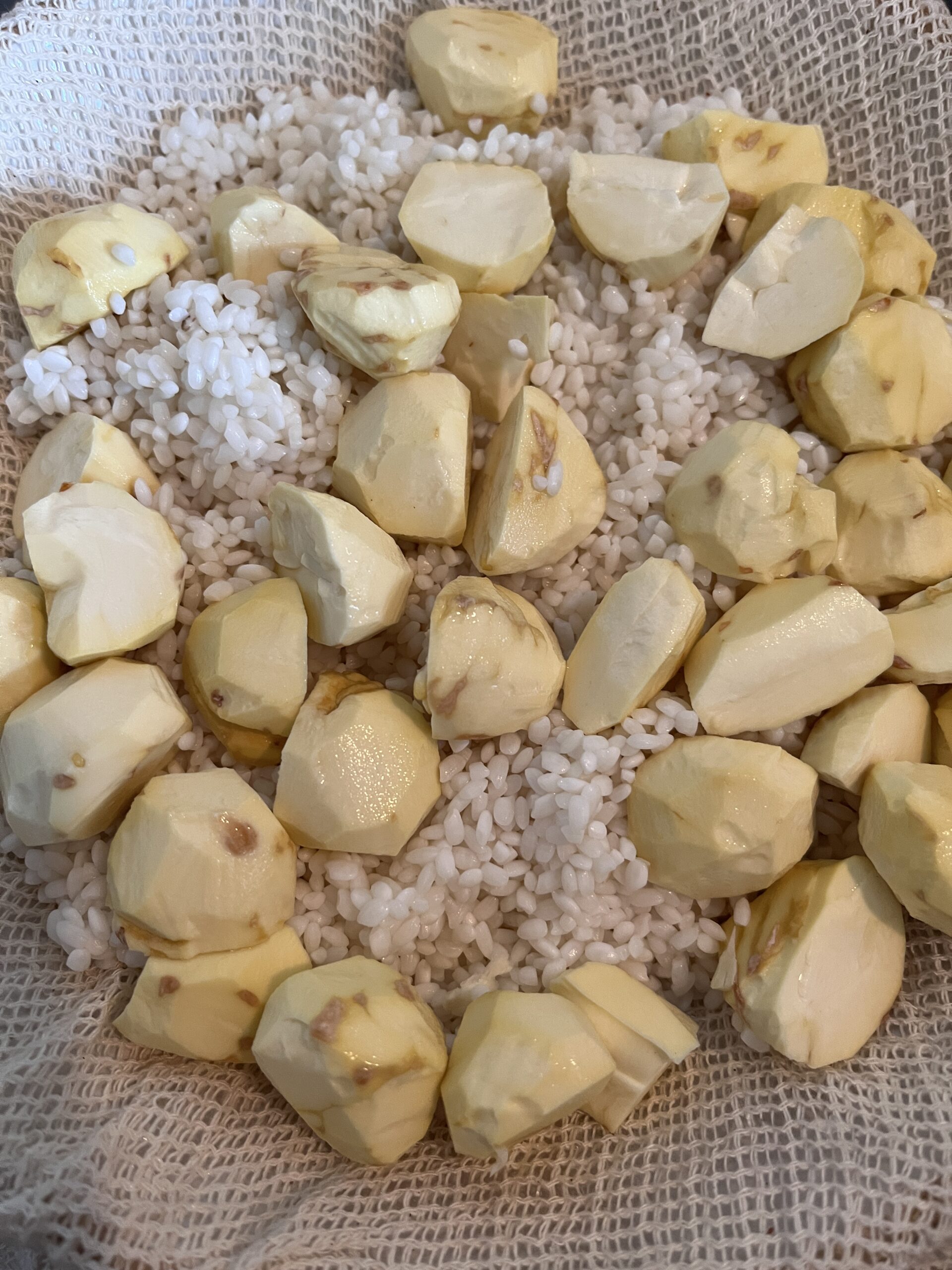 I learned that if you keep the chestnuts in the fridge for two or three days after picking, they become even sweeter!