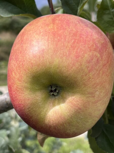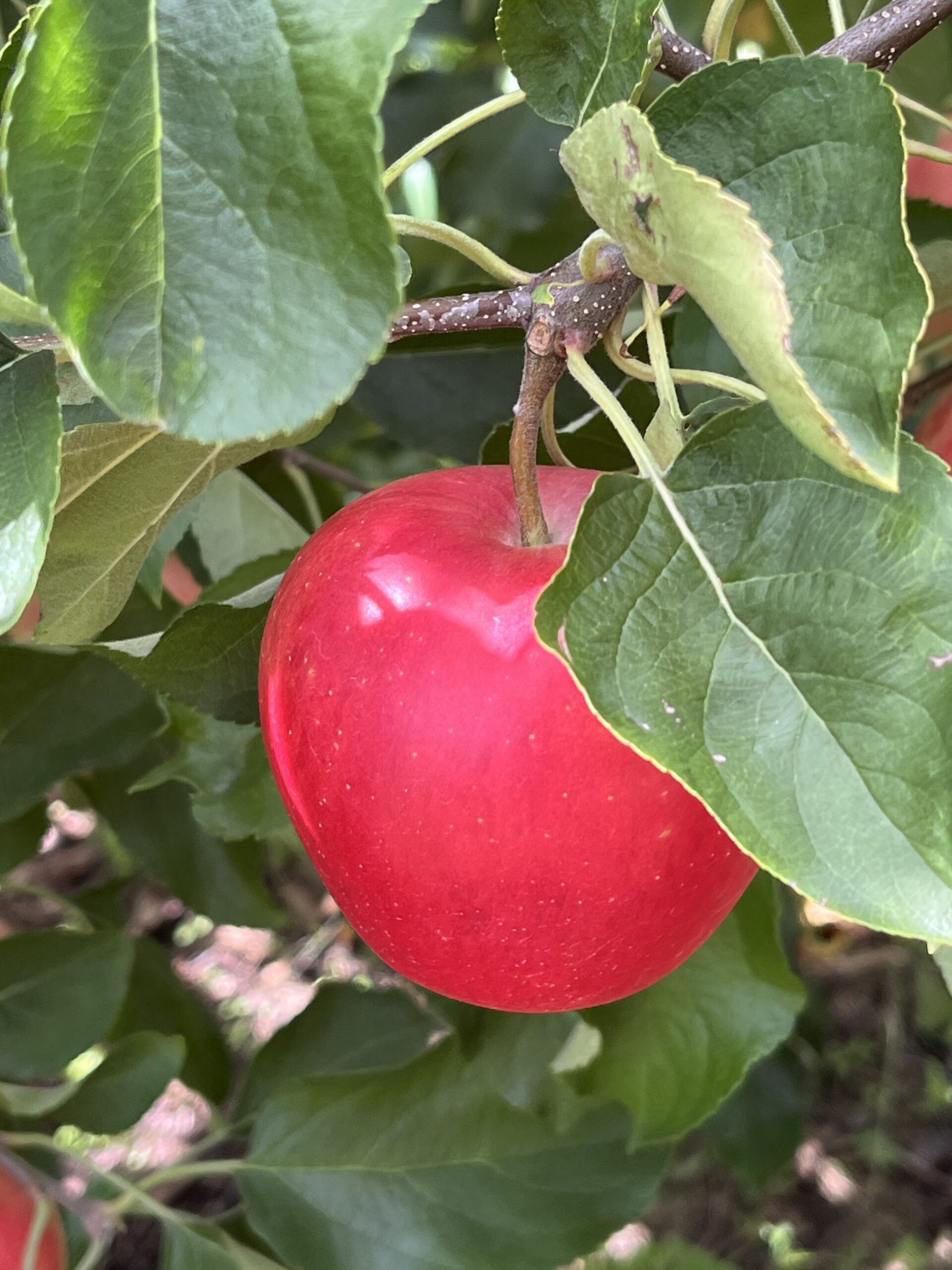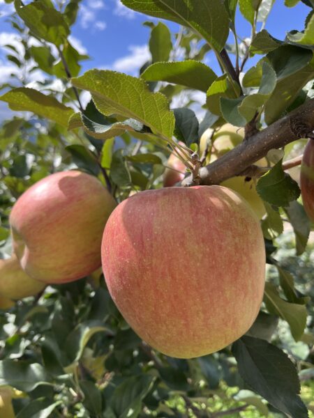 林檎も食べごろです。へたのところがぎゅっと奥に引っ込んでいるのが甘いんだと教えてもらいました。