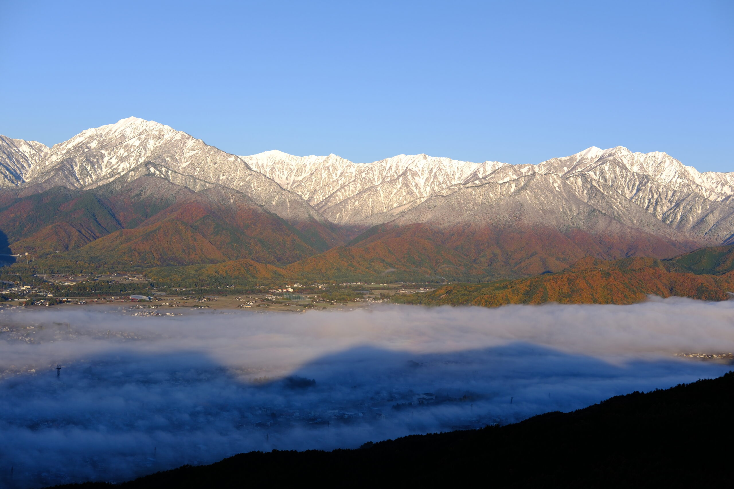 鷹狩山展望台からは雲海と北アルプスがとてもキレイに見えました。