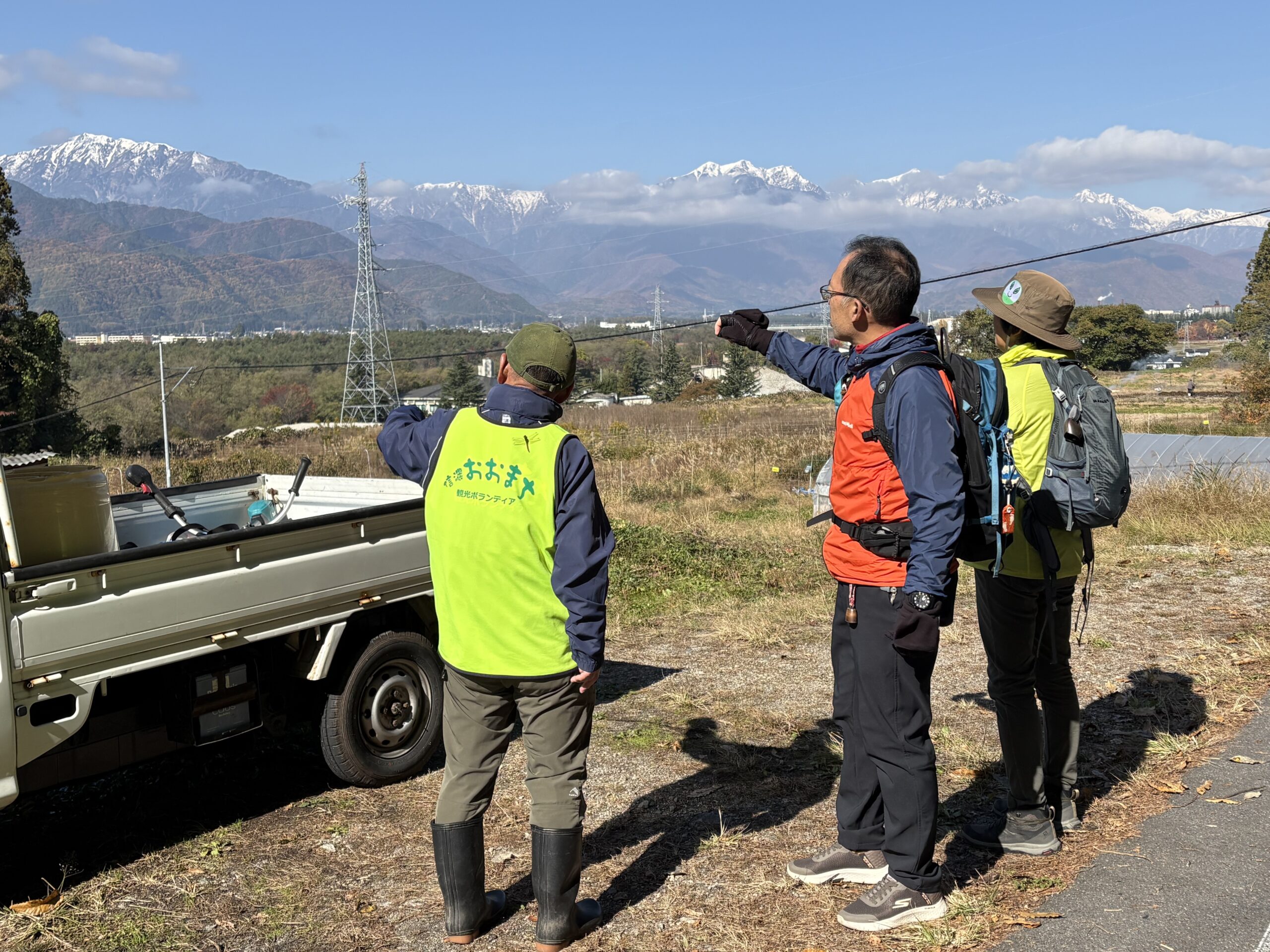 ガイドさんによる山の名称のご案内に熱心に質問される参加者の皆さま