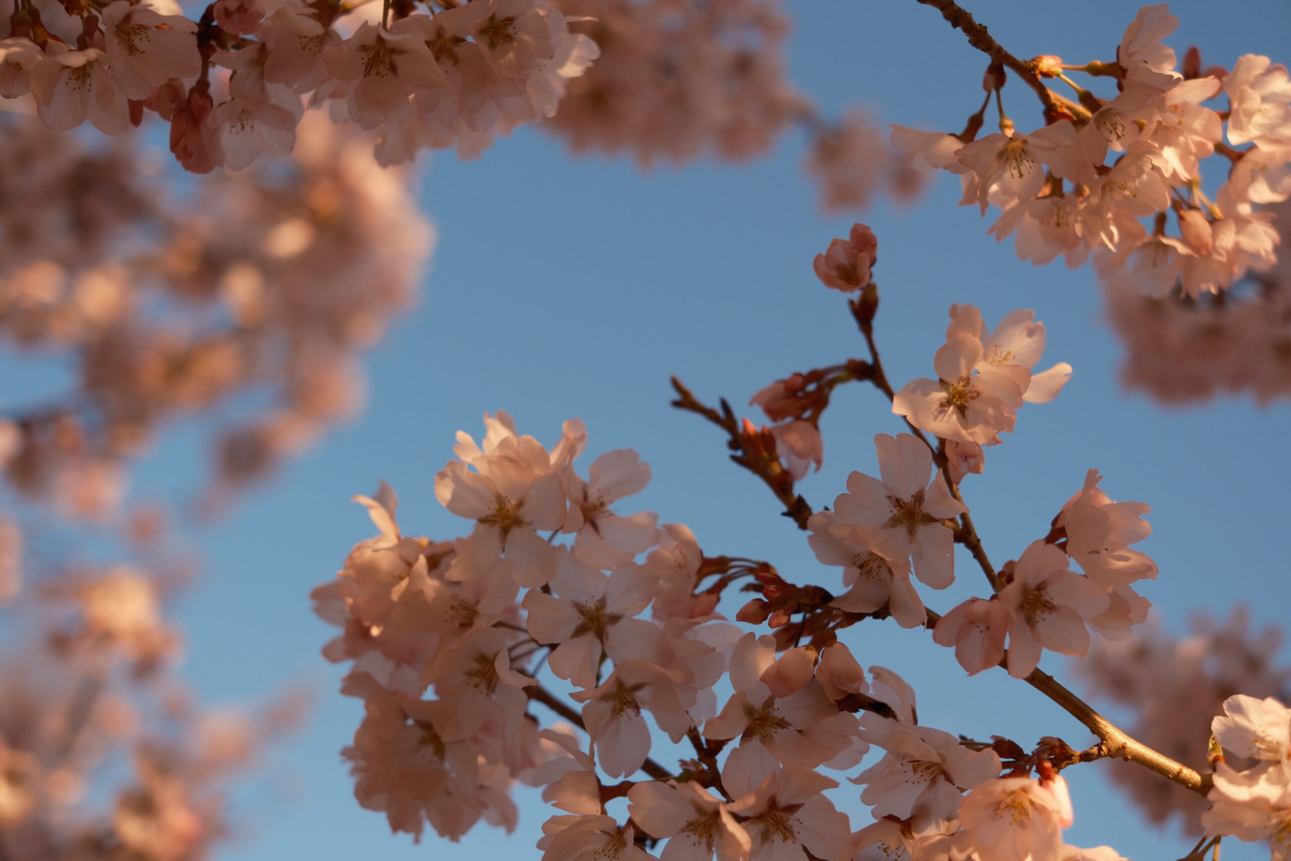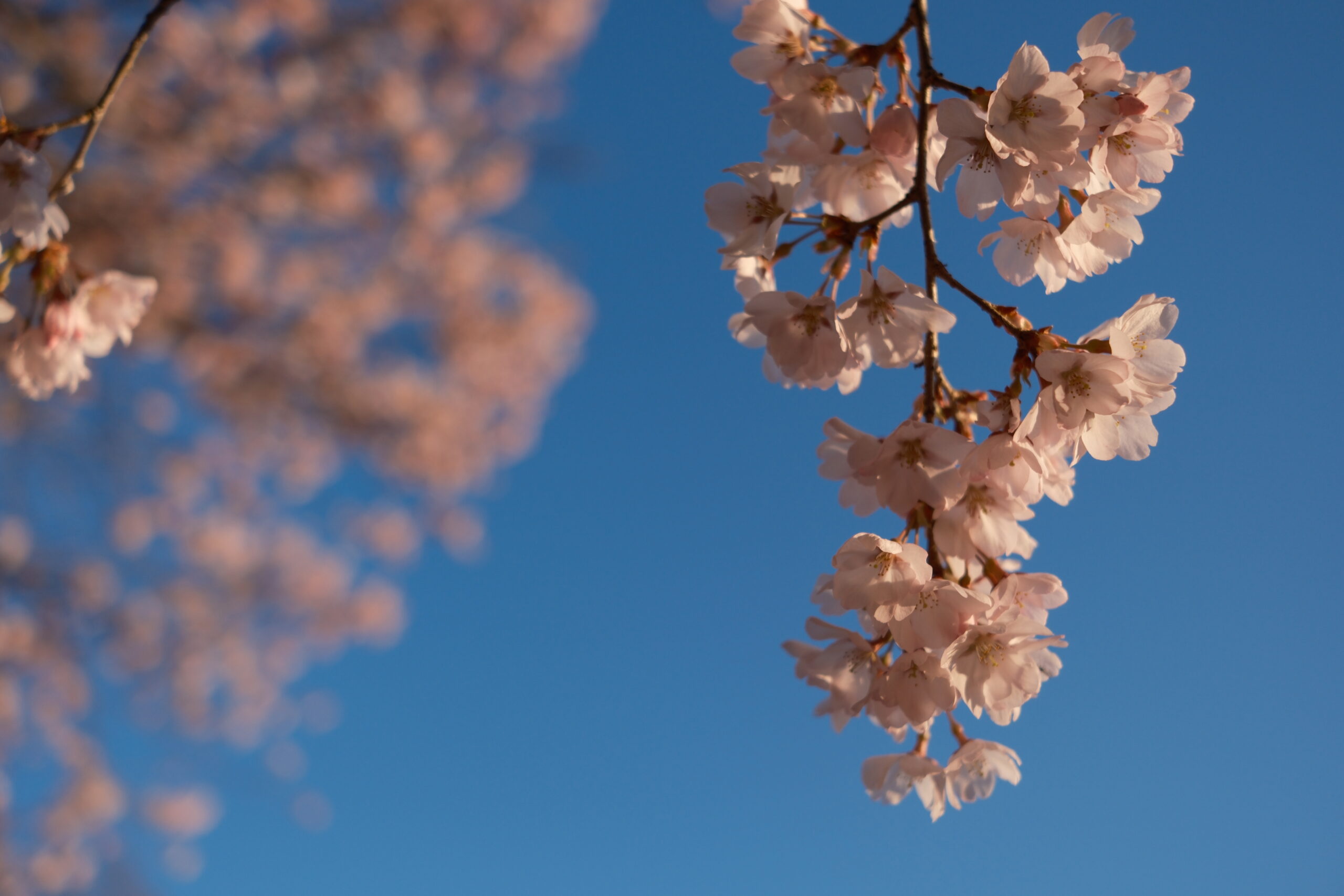 早朝の桜も、日中の桜も、夕方の桜も良いですね。