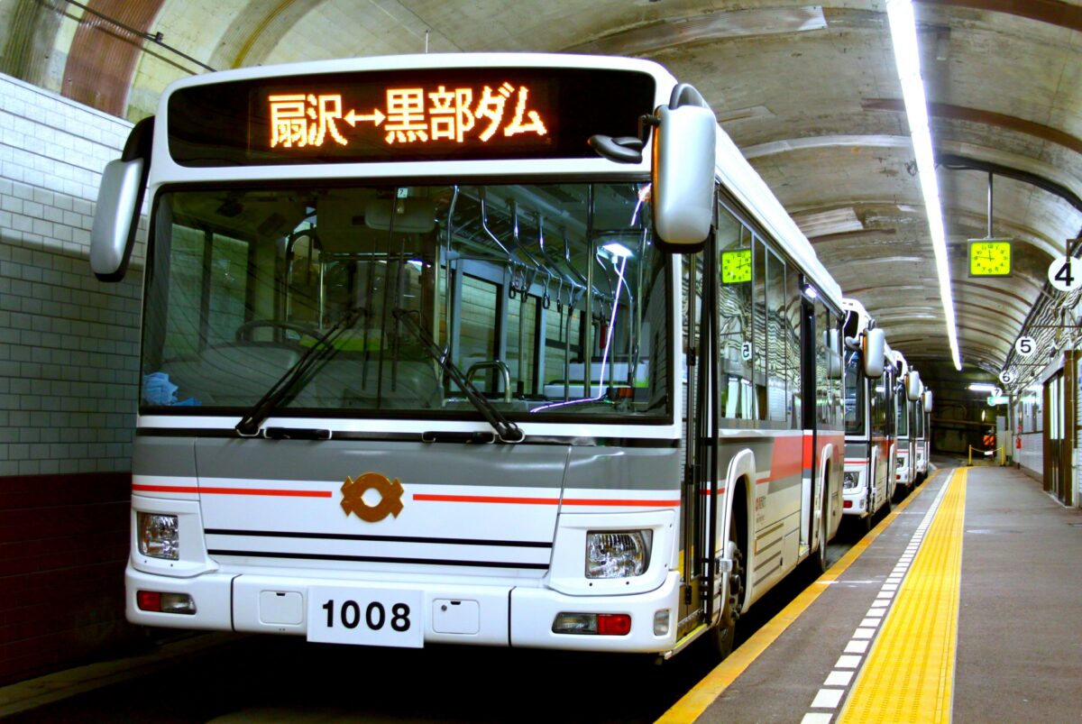 駅前からアルピコ交通と北アルプス交通の路線バス「信濃大町―扇沢線」が運行しています。所要時間は約40分、運賃は片道2,000円です。往復割引運賃はありませんが、運行本数は比較的多く、利用しやすいルートです。