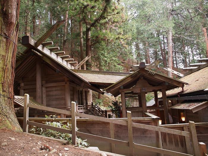 黒部ダムから車で約40分の距離にある仁科神明宮は、現存する日本最古の神明造本殿を持つ神社です。本殿・中門・釣屋が国宝に指定されています。