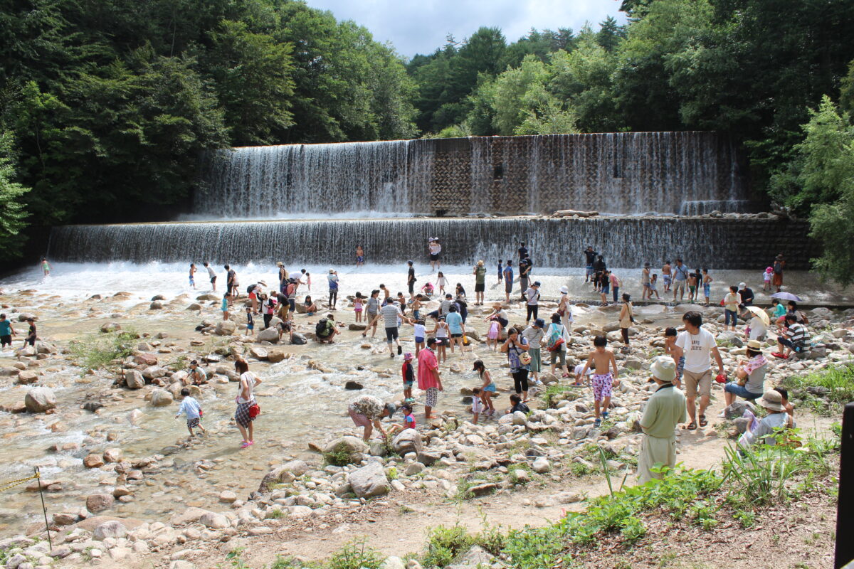 ・【真夏(8月)】平地の猛暑を忘れさせる涼しさが魅力です。水しぶきが心地よく感じられるシーズンといえます。夏休み期間のため賑わいますが、活気があります。