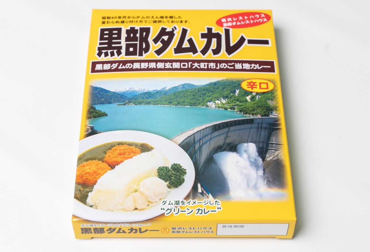 パッケージにはダムの写真が使用されており、お土産としてわかりやすいデザインです。別売りの「黒部ダムカレーライス型」と合わせれば、自宅でもダムカレーの盛り付けが楽しめます。