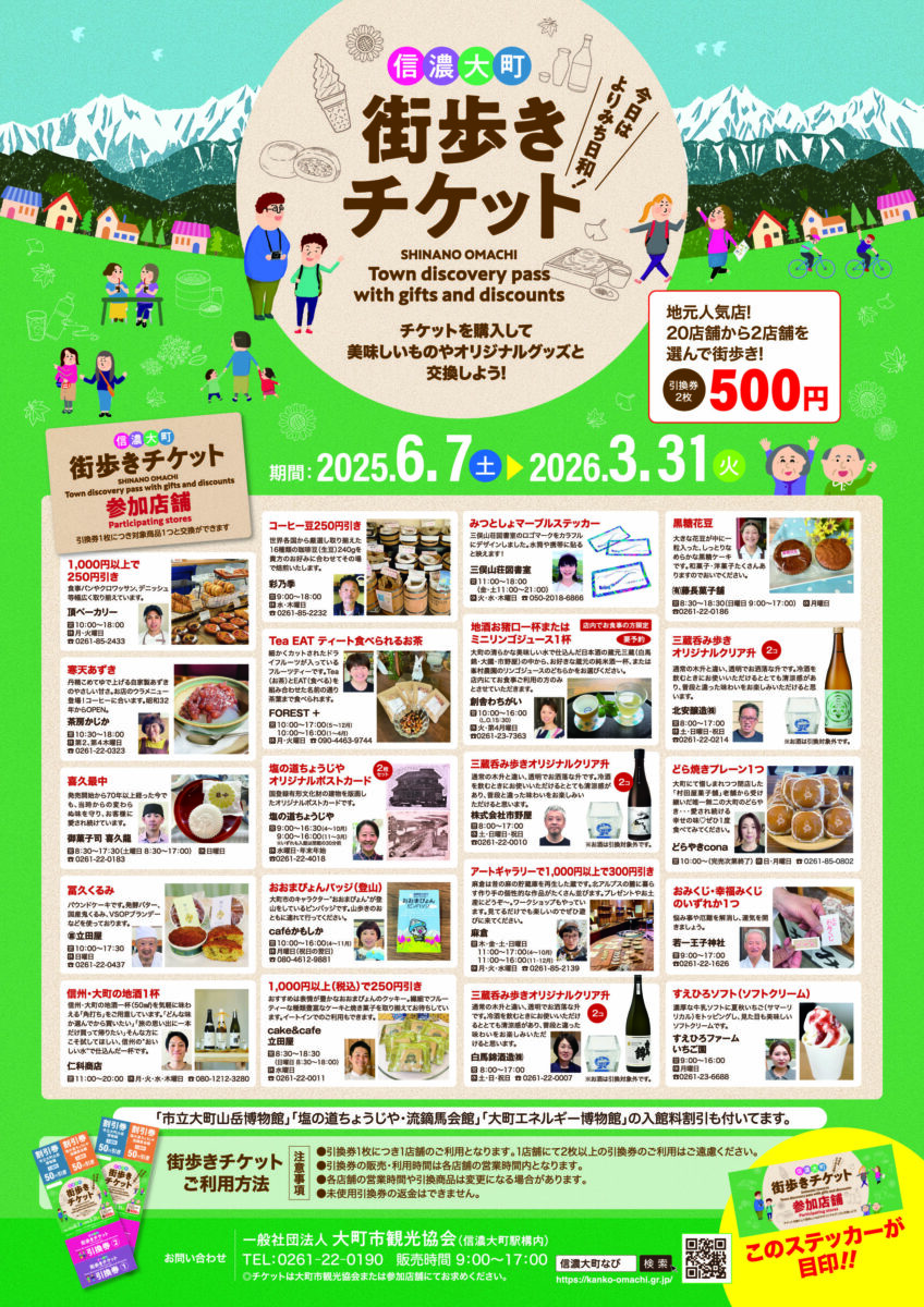 大町市市街地周辺をめぐる際に便利な、街歩きチケット好評販売中です。