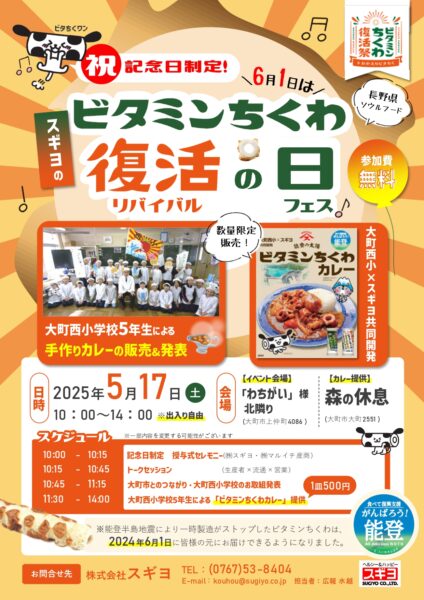 長野県民のソウルフード❤スギヨのビタミンちくわ復活の日記念日が6/1に制定されたのを記念して 「ビタミンちくわ復活の日フェスが5/17(土)に開催されます。