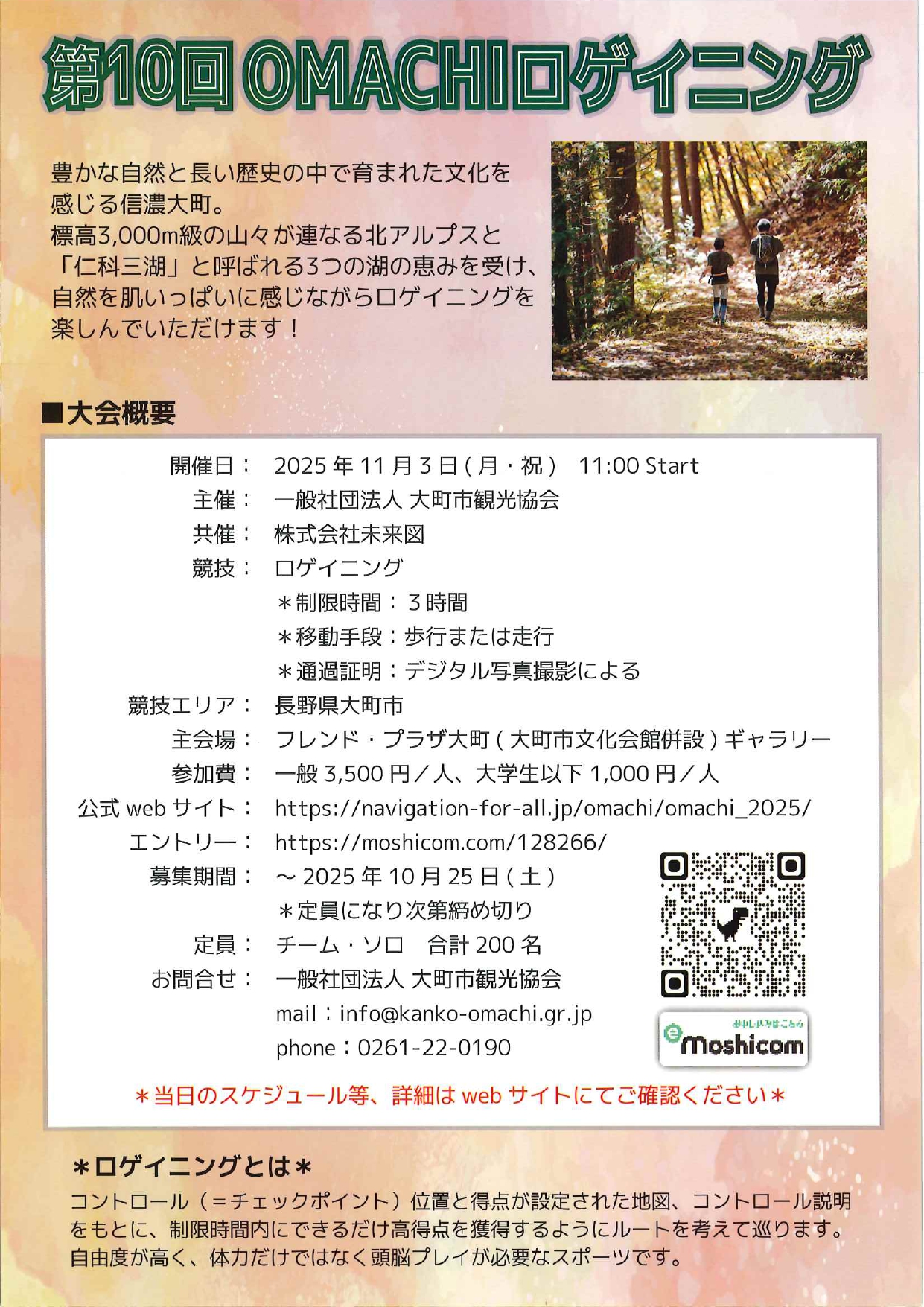11/3(月・祝)記念すべき10回目となるOMACHIロゲイニングを開催します。