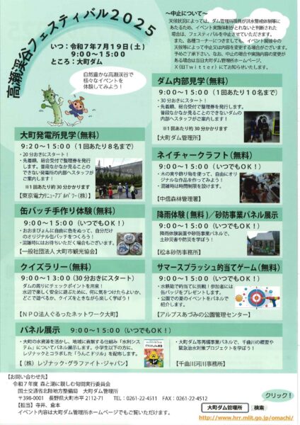 大町ダムにて今年で36回目の高瀬渓谷フェスティバルを開催します。
