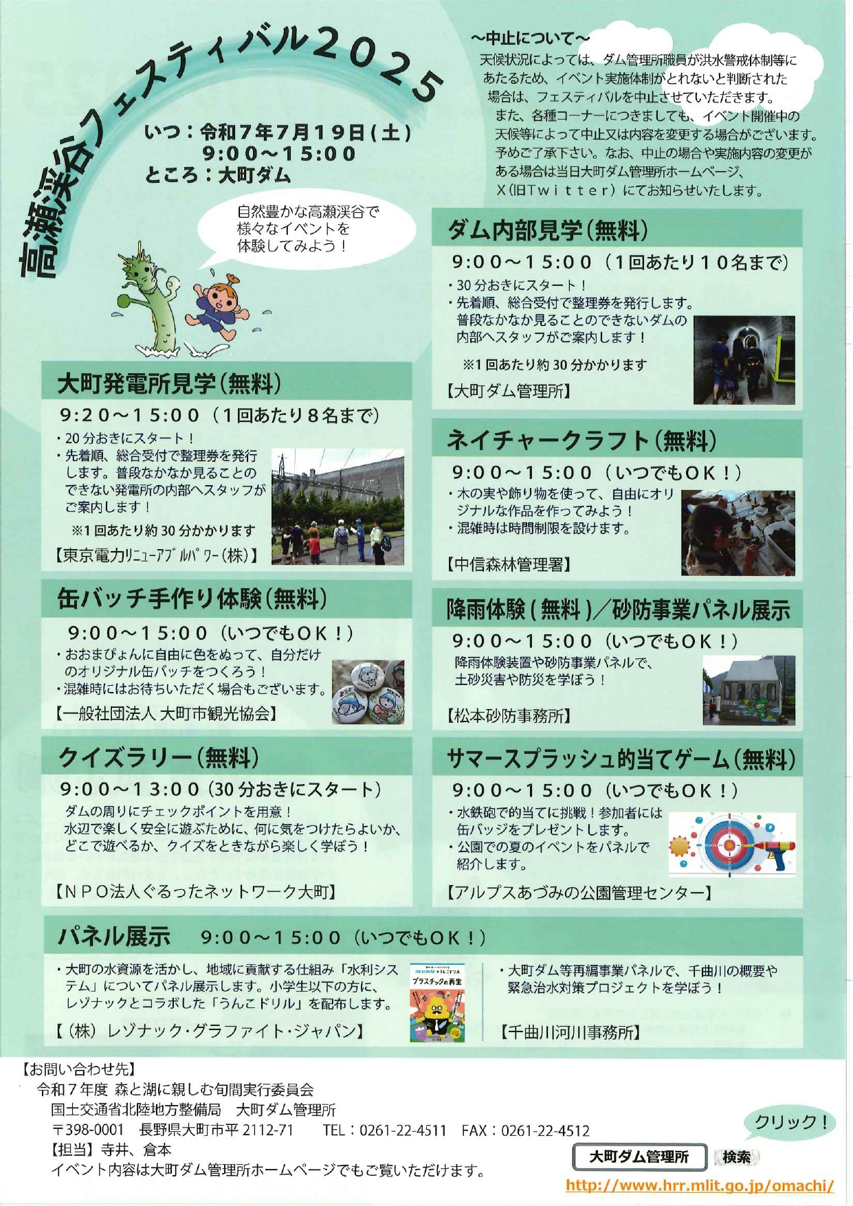 場 所: 大町ダム管理所(小雨決行)