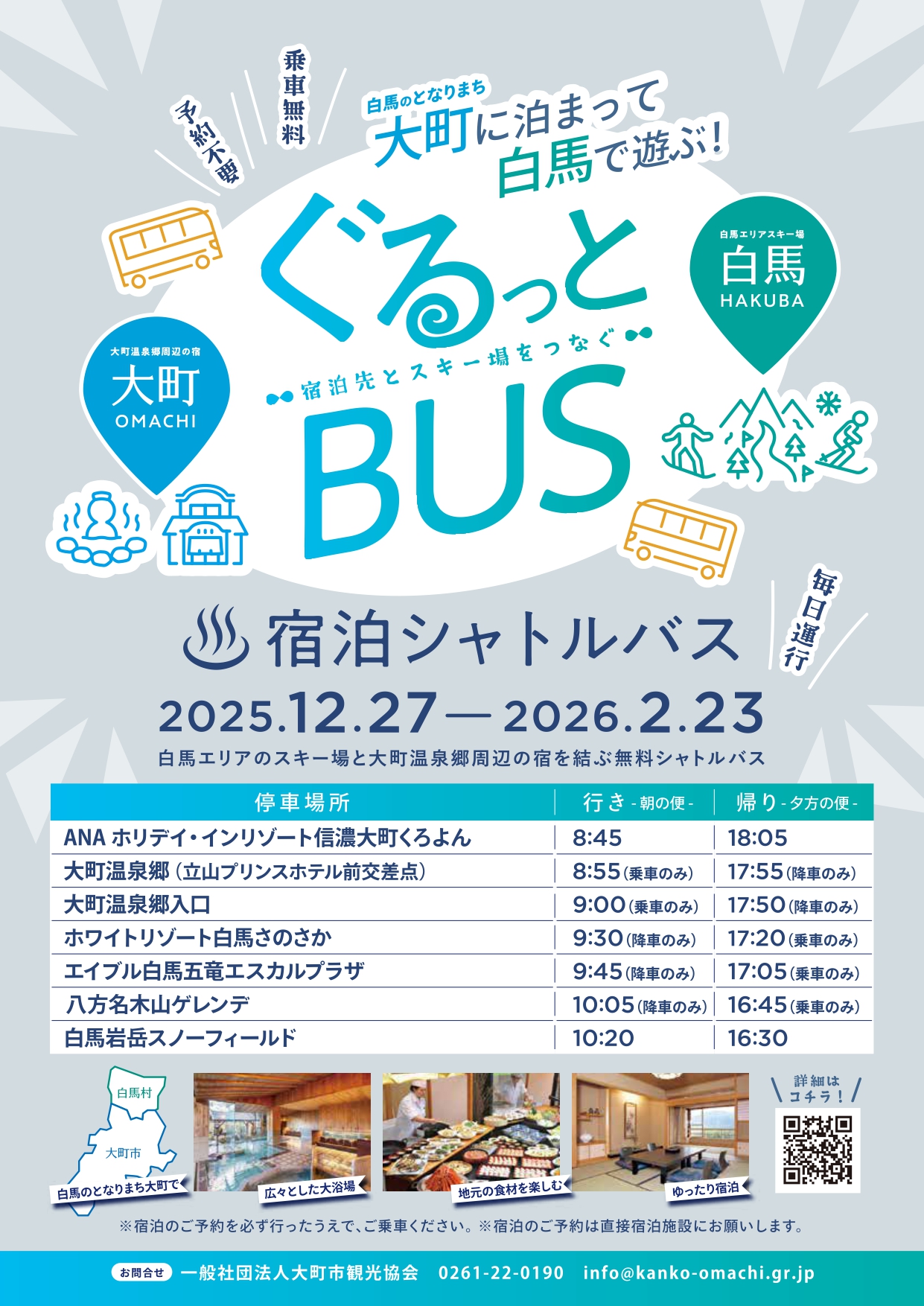Find the shuttle bus timetables from Omachi Onsenkyo and Shinano-Omachi Station here.