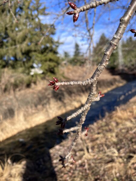 農具川の南の方では桜がツボミをつけています🌸 例年よりも春の訪れが早いのでしょうか。