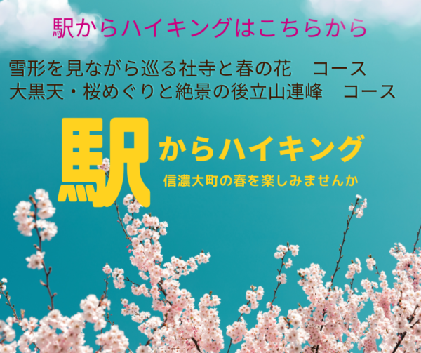 4月1日(水)から🚃駅からハイキング🚃が始まります 🌸大黒天・桜めぐりと絶景の後立山連峰🌸 🌸雪形を見ながら巡る社寺と春の花🌸