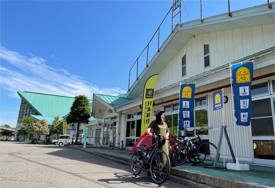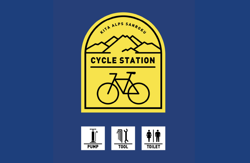 「サイクルステーション」とは、サイクリングの途中で気軽に立ち寄ることができるサイクリストのための休憩スポットです。大町市内には40箇所以上のサイクルステーションがあり、各ステーションにはサイクルラック・トイレ・空気入れ・修理道具が設置されています。ぜひご活用ください。