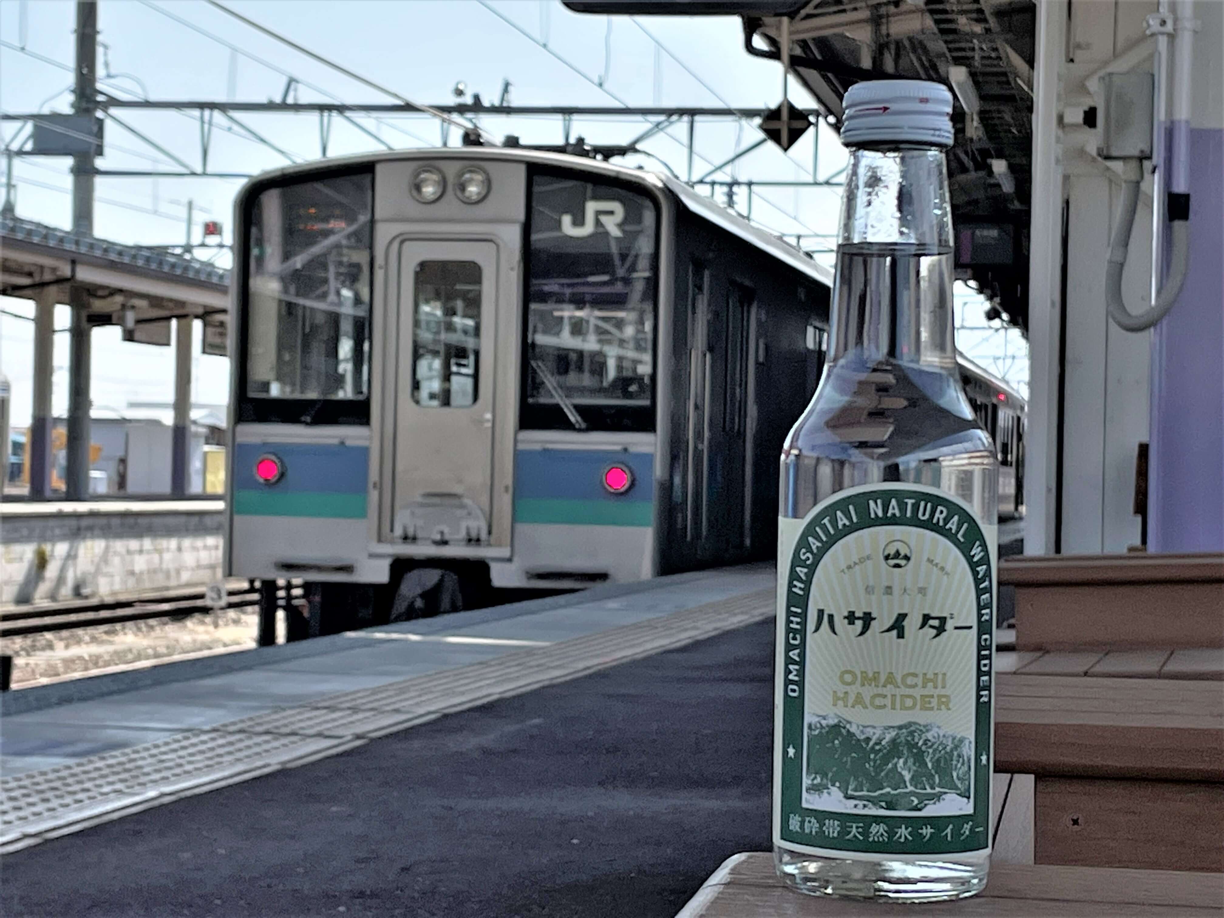 大糸線に乗ってきてレンタサイクルをご利用いただくと自転車返却時にハサイダ―1本プレゼント。大町市観光協会の窓口での合言葉「大糸線に乗ってきました!」